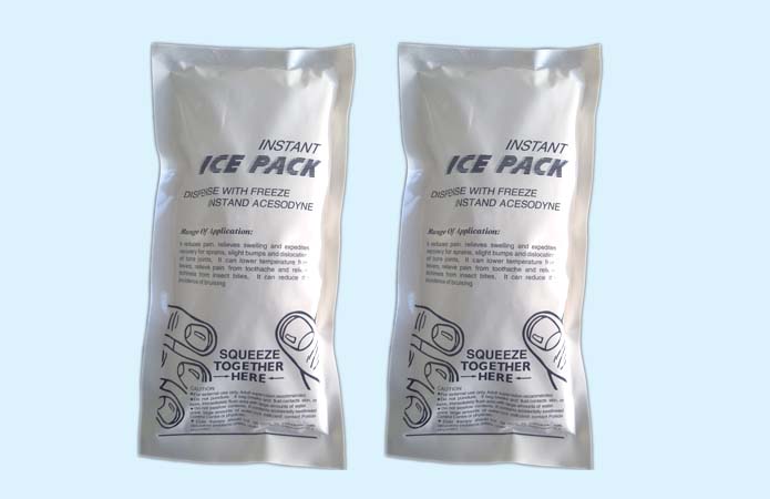 Find the liquid bag in the ice bag and make it broken and 3 seconds later it will be freezed.Then shake the bag up and sown to make the content fully mixed, and the temperature will be depressed below zero by the ice bag in 2 minutes.